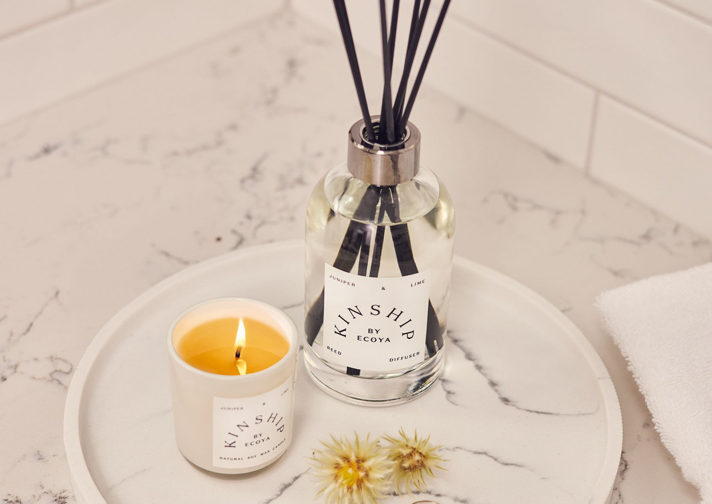 The KINSHIP by ECOYA Mini Candle blends natural soy wax with contemporary fragrances designed by ECOYA. A miniature version of our larger candle. Juniper & Lime...